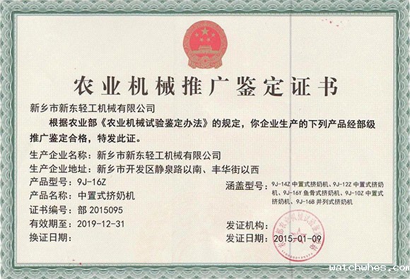 新乡市watchwhes轻工机械有限公司是中国乳品工业协会会员单位,农业部农机具补贴定点供货企业,同时也是国内较早生产和销售乳品机械及其他轻工机械的专业厂家之一。